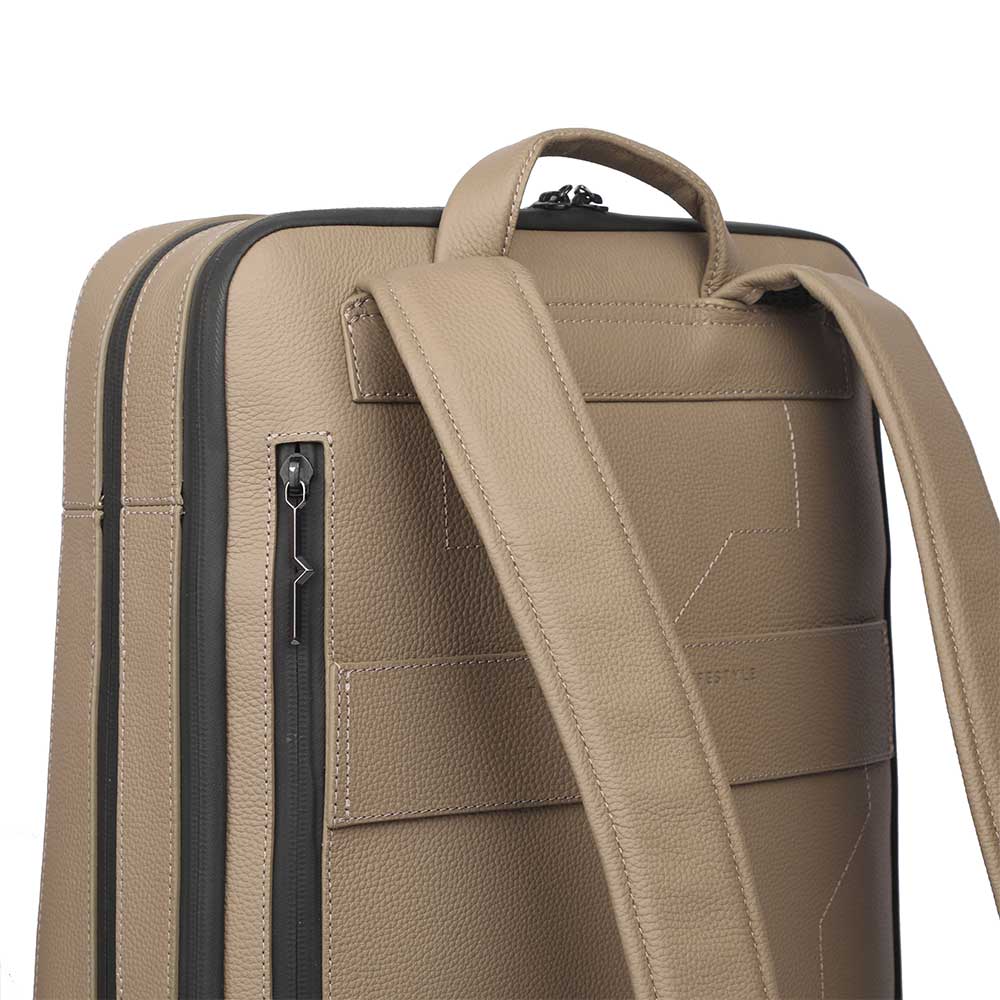 این کوله پشتی مدرن دارای طراحی مینیمالی است که با تکیه بر خطوط و تکنولوژی ساخت خود، جلوه ای از ظرافت را به نمایش می گذارد و آن را هم برای محیط های حرفه ای و هم غیررسمی ایده آل می سازد. این کیف با تکیه بر مهارت ساخت بالا و توجه به جزییات به همراه دوخت هندسی پشت کیف، ظاهری مدرن و ساختارمند دارد و برای افرادی که به دنبال استایل، کارایی و راحتی هستند، کیف مناسبی است. بند قابل تنظیم و پددار برای راحتی بیشتر و یک دسته برای حمل دستی دارد. فضای داخل کیف به نحوی طراحی شده که مناسب برای سازمان دادن وسایل مختلف شماست. جیب پشتی کیف نیز امکان دسترسی سریع را فراهم می کند.